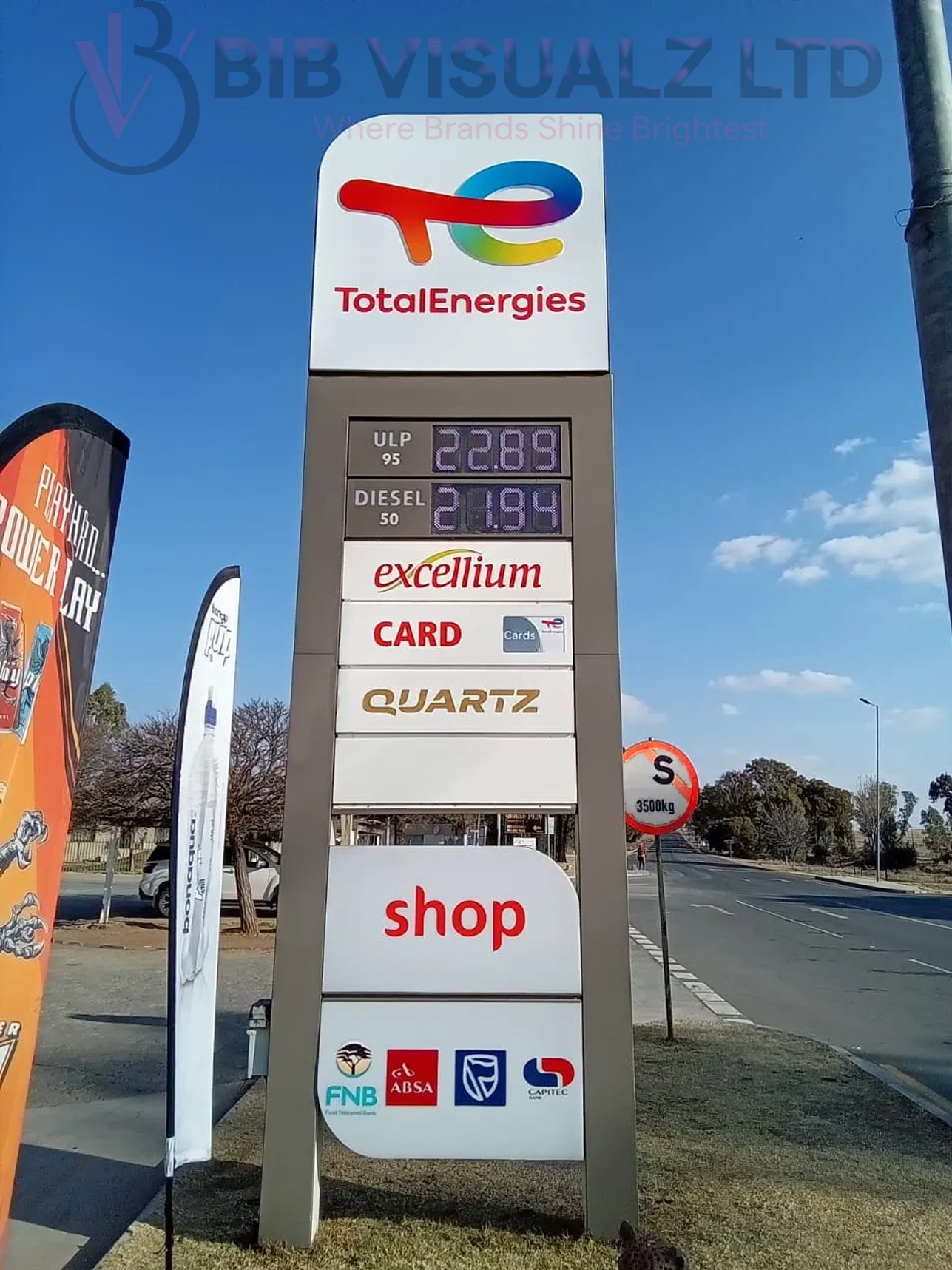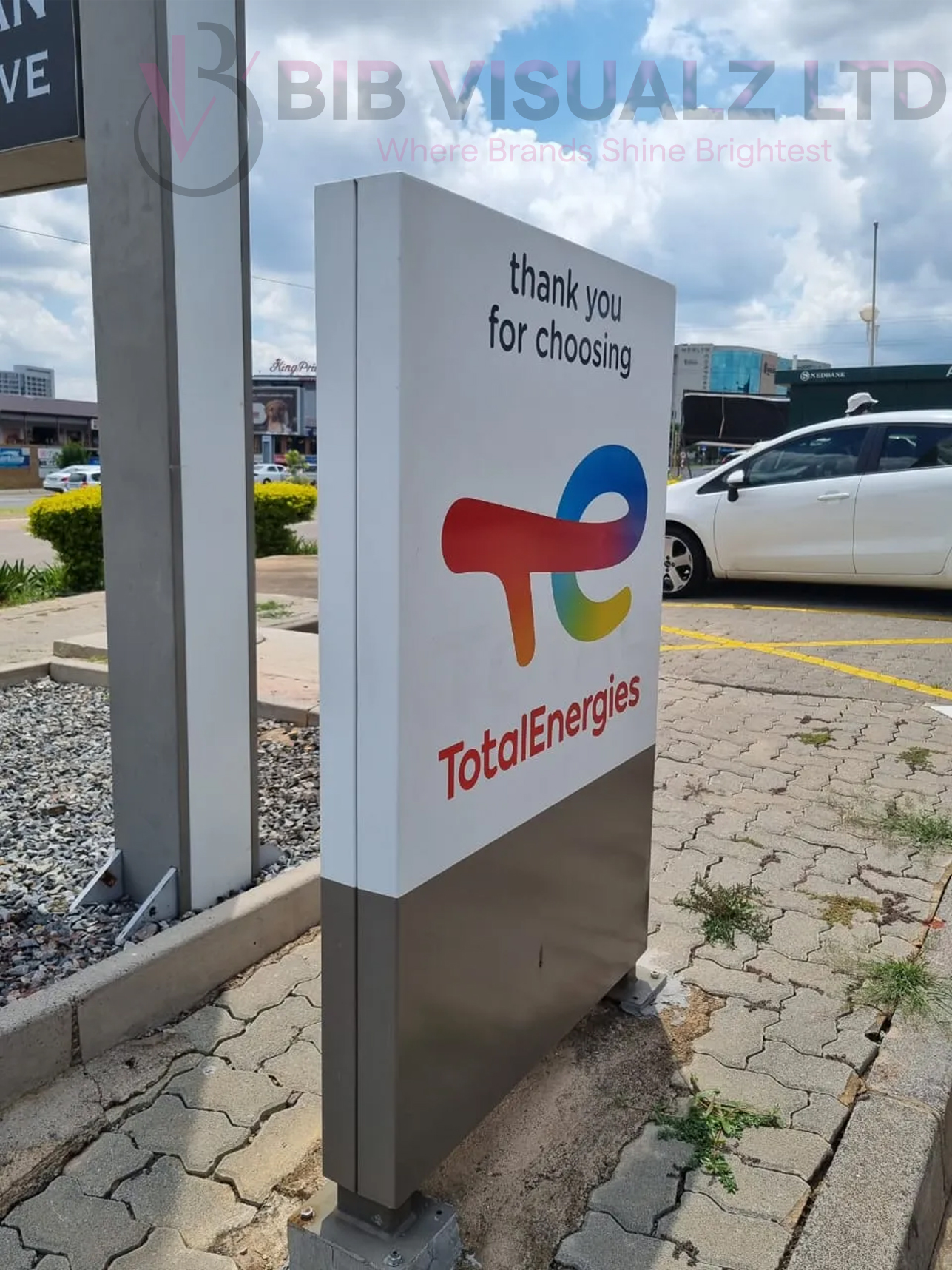 These towering, customizable signs are perfect for showcasing your brand, directing customers, or highlighting promotions with bold, vibrant displays. Crafted with durable, weather-resistant materials and energy-efficient LED lighting, at Bib Visualz, our pylon signs ensure your message shines bright, day or night. Whether for retail, restaurants, or corporate campuses, our sleek designs blend style and functionality to boost your curb appeal and drive foot traffic. Stand tall, stand out—choose our pylon signs to make your business unmissable! Contact us today to customize your perfect sign!